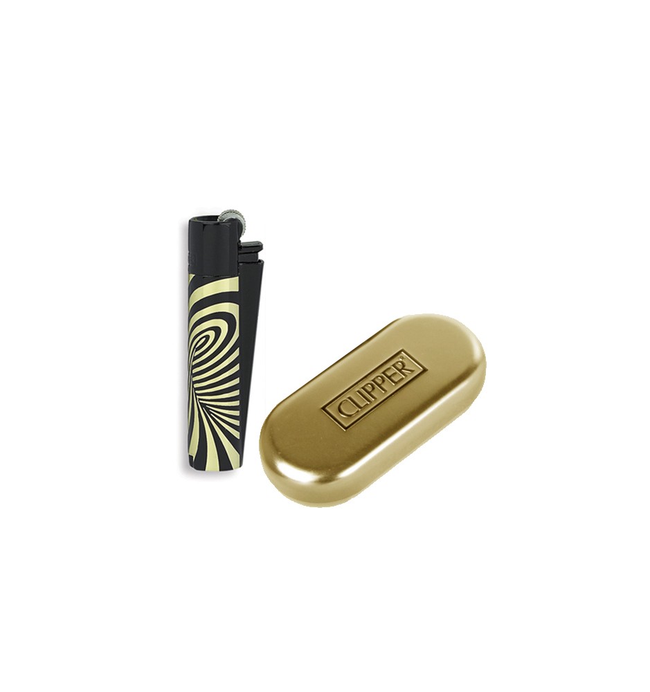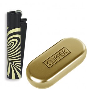 Accendino clipper da regalo con scatolina di metallo.
