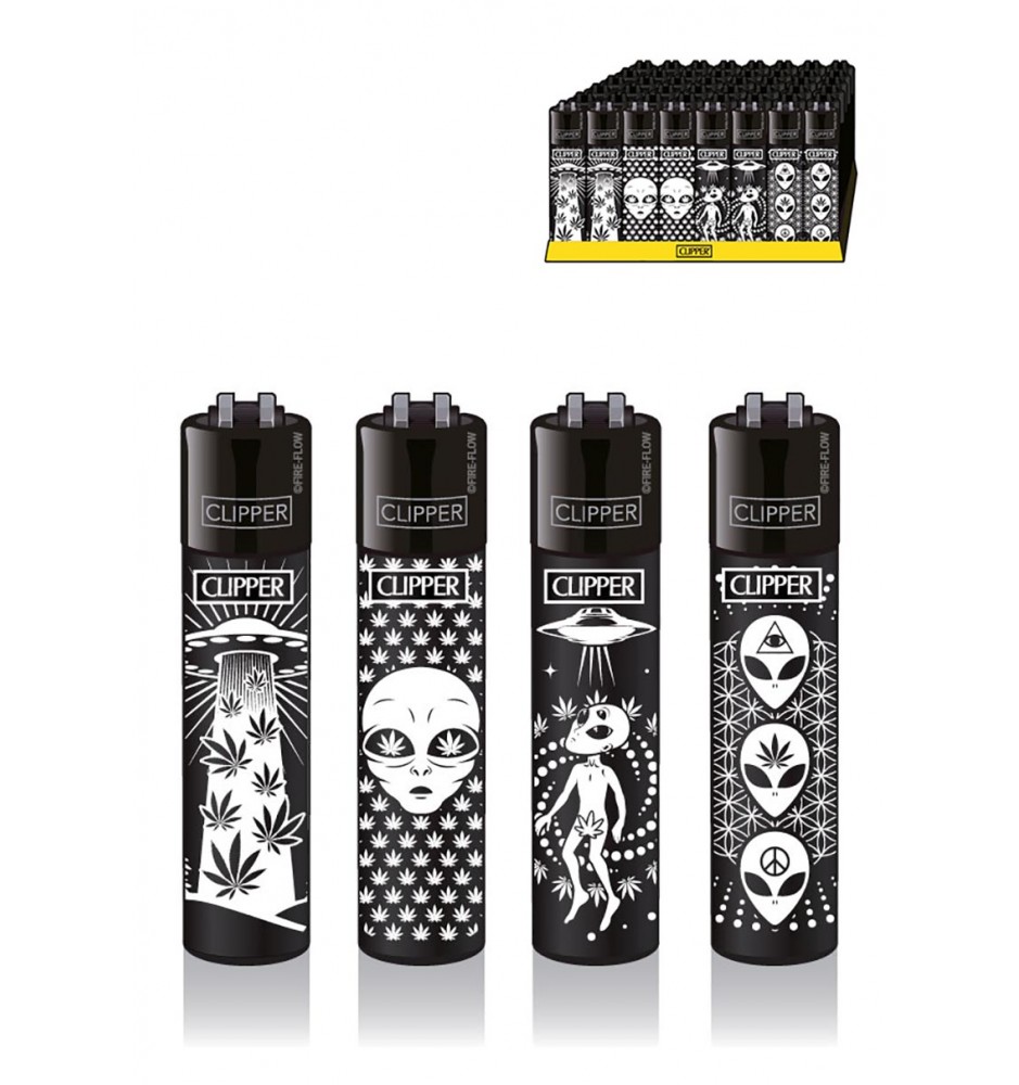 Questo set di accendini della Clipper è caratterizzato da una grafica accattivante a tema alieni e cannabis. Ovviamente gli accendini sono ricaricabili e inoltre è possibile sostituire la pietra focaia.