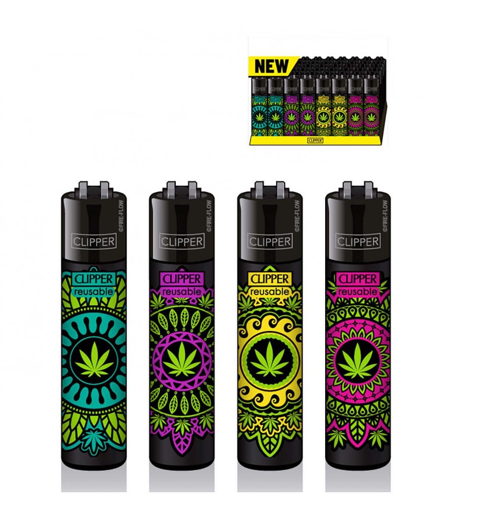 Questo set di accendini della Clipper è caratterizzato da una grafica accattivante a tema mandala e cannabis. Ovviamente gli accendini sono ricaricabili e inoltre è possibile sostituire la pietra focaia.