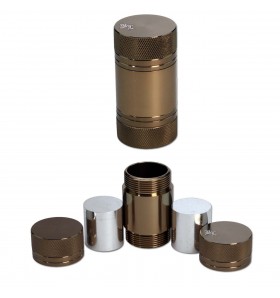 Questa pressa perfettamente portatile è fatta di alluminio resistente, con un tappo avvitabile ad ogni estremità. Per usarla si rimuove uno dei due cilindretti all'interno e si riempie con il materiale. Si rimettono al loro posto il cilindretto e il tappo avvitabile e si comincia stringere la pressa avvitando i tappi. In questo modo si forma un "soldino" di materiale pressato.