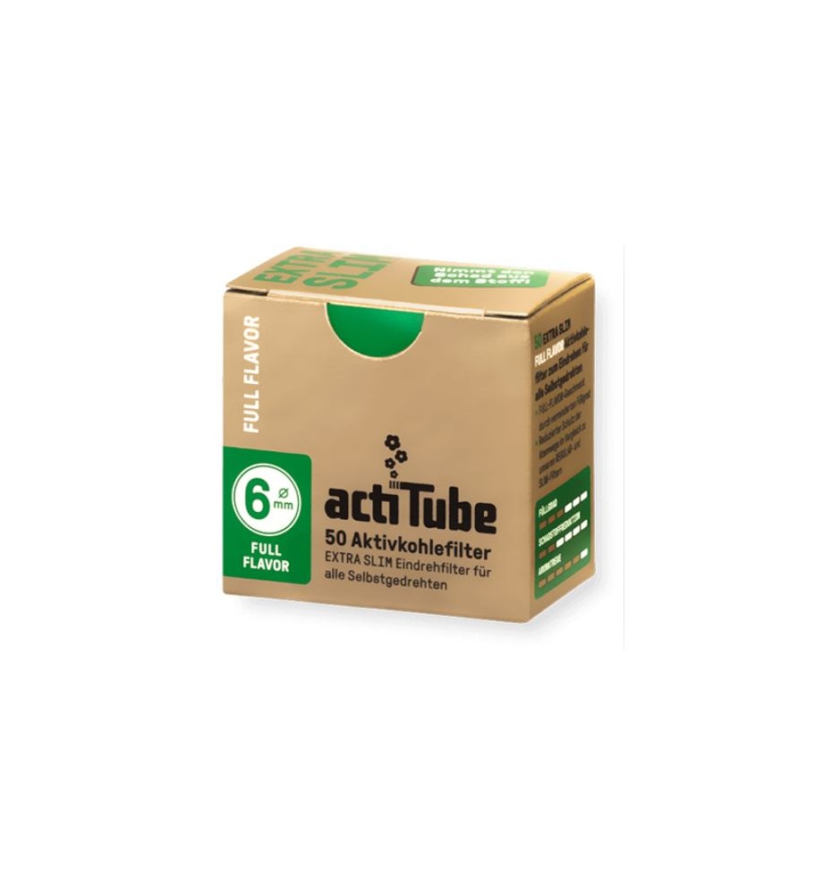 Filtro "extra slim" ActiTube. Di alta qualità, di produzione tedesca. Da utilizzare al posto dei normali filtri di carta, con una capacità filtrante ben maggiore rispetto a questi ultimi.