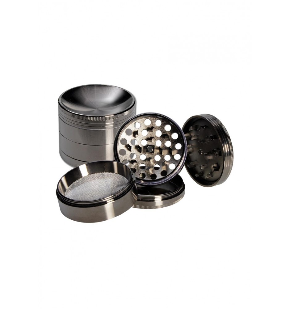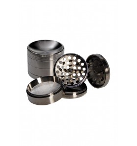 Questo grinder ha una forma concava con calamita per garantire una chiusura solida. Una delle parti del grinder contiene la retina per raccogliere il polline, anche grazie all'aiuto della spatolina inclusa.
