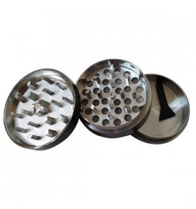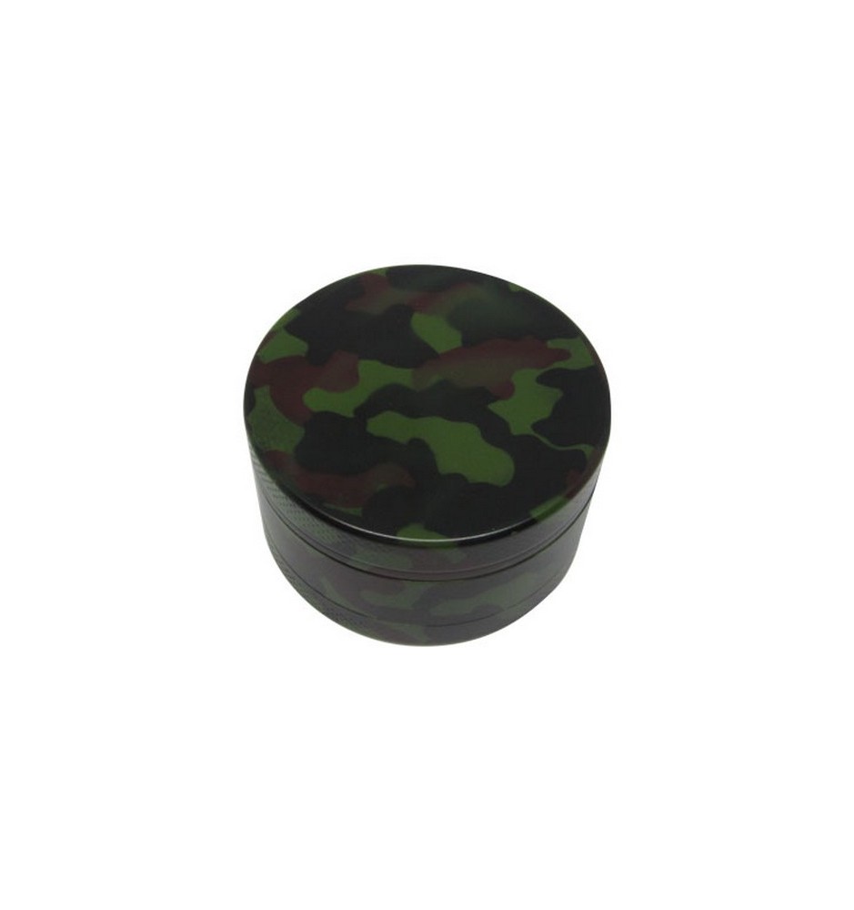 Grinder in metallo, in tinta mimetica. È in 3 parti e ha il setaccio con spatolina.