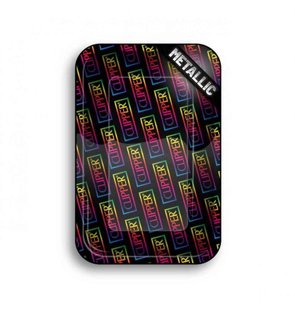 Questo vassoio di metallo per rollare non solo è pratico e robusto, ma colpisce per la sua bellezza grazie ai loghi della clipper color arcobaleno che lo ricoprono.