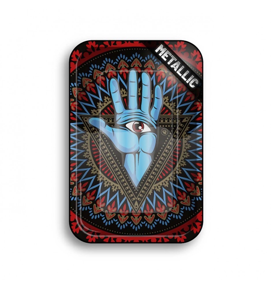 Il design psichedelico di questo vassoio di metallo prende il nome dal raffigurato "terzo occhio" che rappresenta la percezione al di là della visione ordinaria.