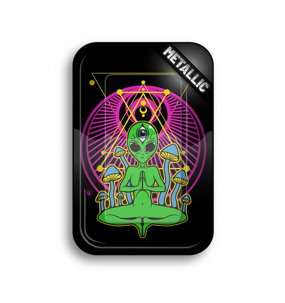 Questo vassoio di metallo è di alta qualità e ha una grafica accattivante da trip psichedelico.