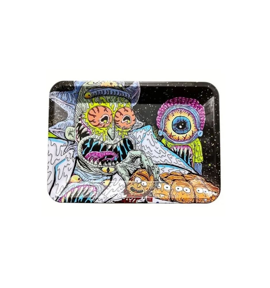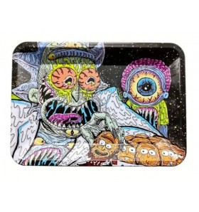 Vassoio per rollare di metallo, con grafica psichedelica.