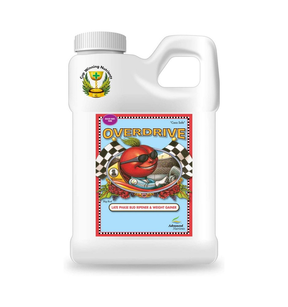 Fertilizzante Overdrive Advanced Nutrients è stato progettato per il ciclo di fioritura tardiva. Questa è la fase finale vengono aggiunti acido citrico, acido ascorbico, e una serie di ormoni per uso alimentare al fine di garantire maggior peso e circonferenza in più durante le ultime settimane critiche di fioritura, quando le piante mostrano i guadagni più consistenti.