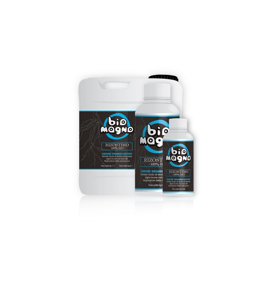 RIZOSTIMO 100% BIO è un concime organico fluido di origine totalmente naturale, contenente estratti di lieviti ed estratti di alga bruna marina della specie Ecklonia Maxima. La presenza nel formulato di un’elevata quantità di auxine naturali, di aminoacidi di origine vegetale, di carbonio, di betaine, di microelementi e di vitamine del gruppo B, permette al prodotto di espletare molteplici azioni sugli organismi vegetali a cui viene somministrato. Il prodotto per le materie prime utilizzate e per la sua peculiare formulazione contiene proteine, vitamine, polisaccaridi, acidi policarbossilici, betaina, sali minerali, aminoacidi (lisina, metionina, triptofano, acido aspartico, acido glutammico, prolina, glicina e arginina), oligosaccaridi, enzimi (cellulasi, proteasi, amilasi, lipasi), batteri della rizosfera (Pseudomonas spp., Bacillus spp., Attinomiceti), Funghi saprofiti (Trichoderma spp.)