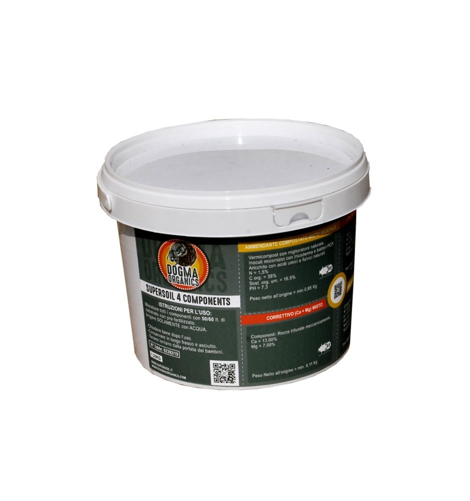 Il barattolo di Supersoil contiene 4 componenti separati da miscelare contemporaneamente al terriccio non pre-fertilizzato.