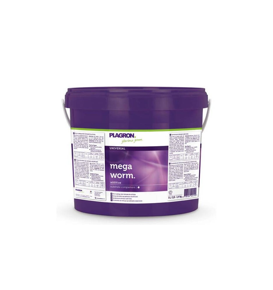 Mega Worm della Plagron è un composto organico studiato per la crescita delle piante. Viene ottenuto dall'humus liquido di lombrichi nutriti in terriccio ricco che offre alle vostre piante molti microelementi, enzimi e minerali. Plagron utilizza il lombrico Dendrobena Veneta, molto adatto a mantenere leggero ed arieggiato il terriccio da invaso. L'Humus di lombrico è inoltre un ottimo ammendante del suolo.