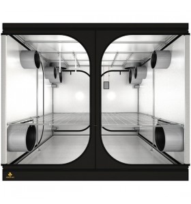 Questa grow room è l'ideale per tenere al sicuro la vostra coltivazione, è foderata con nuovo tessuto Mylar 210D, materiale ad alto coefficiente di riflessione (CRX 95%), lavabile e resistente a calore e umidità. Presenta una struttura in metallo rinforzato con angoli più resistenti (sostiene fino a 30 kg di peso) ed è dotata di prese aria per l'aspiratore e l'introduttore oltre alle superfici retinate per la ventilazione naturale. Completa di tutte le aperture utili per una coltivazione indoor ottimale.