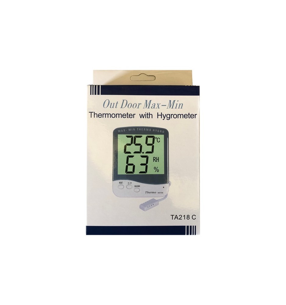Termoigrometro digitale di grande precisione. L'ampio display LCD che permette di leggere con una rapida occhiata: temperatura rilevata (misurata dalla sonda) e umidità relativa.