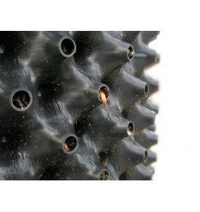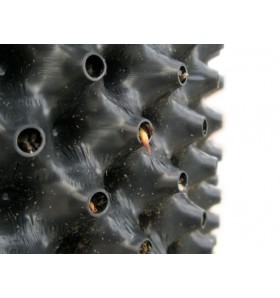 Invece il lato interno di Airvase, formato da altrettante protuberanze coniche, però non forate, costituirà una guida per le radici che perfezionerà il loro rapido ed efficace attecchimento post-trapianto.