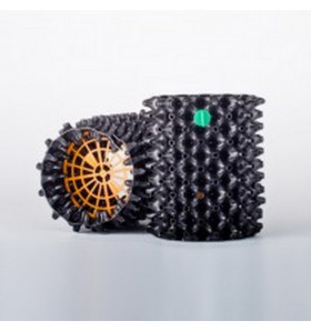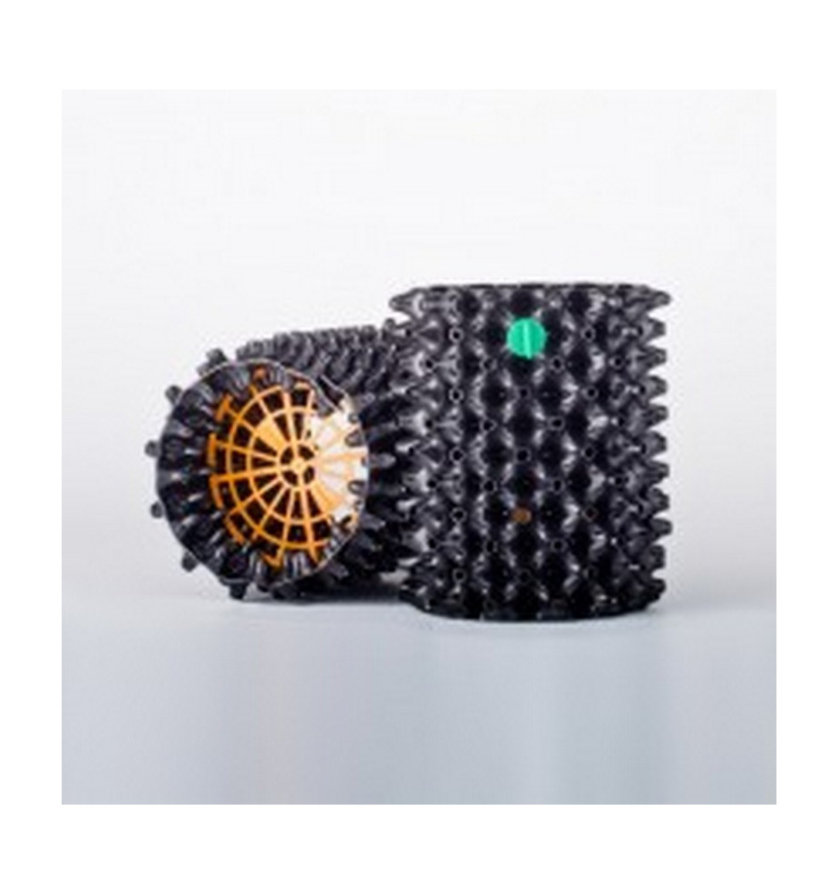 Il suo lato esterno è costituito da tondeggianti coni, bucati centralmente, in grado di attivare il meccanismo detto di auto-potatura delle radici, che consiste appunto nella potatura di queste a contatto con l’aria. Si promuove così lo sviluppo di un nuovo apparato radicale più filamentoso e più consistente, nonché tale da evitare tutti i processi di spiralizzazione.