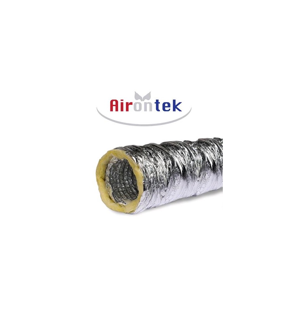Condotta morbida, fonoassorbente, di alluminio, con interno rivestito in lana di vetro per favorire l'isolamento acustico.