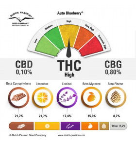 La maggior parte delle piante conservano i famosi sapore e colore tipici della Blueberry; questa varietà dà buoni raccolti, produce bud compatti e densi, pieni di resina e molto potenti. Auto Blueberry® produce un effetto Indica dolce e molto piacevole, ma allo stesso tempo potente che dura alcune ore. Tutti dovrebbero provare almeno una volta a coltivare questa varietà!