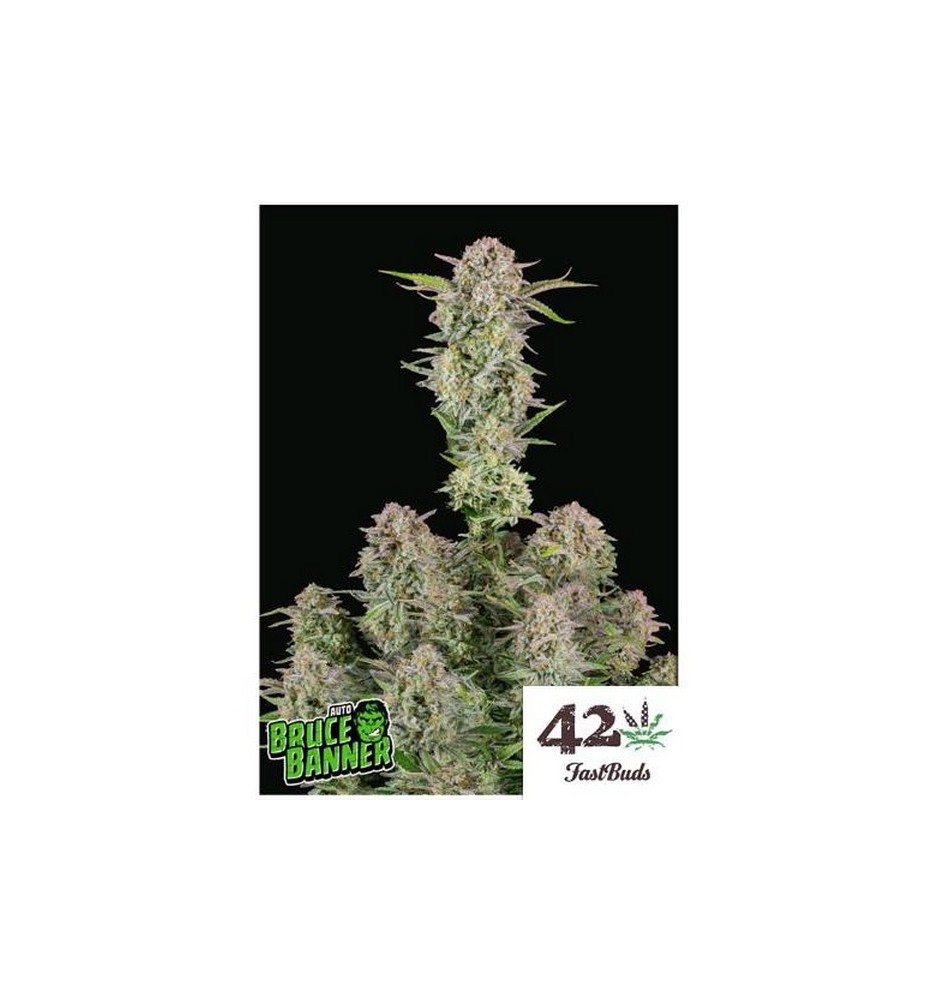 Aspetto della pianta: Bruce Banner Auto cresce alta e cespugliosa, sviluppando foglie a ventaglio dalle dita sottili e relativamente grandi che spuntano dappertutto, e un'alta cola principale che può raggiungere fino a 150cm di altezza circondata da diversi rami laterali. Grazie alla meticolosa selezione e all'allevamento, questa varietà esibisce il meglio di entrambi i mondi; una varietà complessivamente alta con rami laterali lunghi e omogenei che si avvolgono di cime al momento del raccolto e una struttura compatta che rende possibile a tutti coltivarla, nonostante la sua altezza.