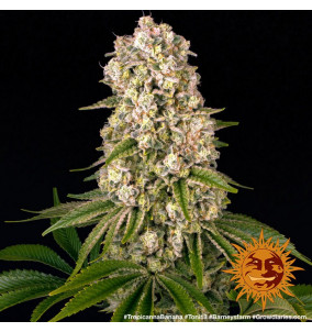 Un’altra aggiunta assolutamente allettante alla Collezione Cali di Barney's Farm. Un incantevole cocktail tropicale di aromi freschi e fruttati, di indiscutibile forza e con uno straordinario potenziale di resa. Questo notevole ibrido è dolce, appiccicoso, pompato, altamente potente e lascerà i grower a bocca a aperta di fronte a questa genetica altamente performante. Barney’s Farm ha addomesticato questo ibrido a dominanza Sativa (60% Sativa, 40% Indica) e l’ha guarnito con cucchiaiate di tricomi scintillanti profumati di dolce frutta tropicale. Un matrimonio perfettamente riuscito di Tropicanna (Girl Scout Cookies x Tangie) e un pizzico di Banana Kush che infonde un effetto Indica calmante. Lasciate che la sua effervescente personalità vi guidi in un mondo di euforia e mistero. Tropicanna Banana è una pianta molto vigorosa, capace di fornire una produzione mostruosa quando è nelle mani giuste. Indoor aspettatevi altezze fino a 110cm e raccolti di 700g/m2 (fioritura di 65-70 giorni). Outdoor può facilmente offrire rese fino a 2kg per esemplare. I livelli di THC del 22-25% assicurano uno straordinario valore terapeutico ed effetti rilassanti e tonificanti che vi accompagneranno per tutta la giornata.