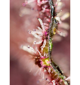 L’aroma di questa varietà è probabilmente il più squisito di tutte le varietà a fiore rosso presenti sul mercato, possiede un potente aroma dolce e citrico di mandarino, con sfumature fresche di cipresso blu. Ideale per estrarre concentrati di grandissima qualità aromatica e molto vistosi, grazie ai toni rossicci e rosati della resina.