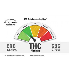 Un gusto straordinario, con note di lime e un aroma di scorze di agrumi. CBD Auto Compassion Lime può essere pronta per il raccolto a sole 10-11 settimane dalla germinazione, tollera un fotoperiodo di 20 ore di luce, dalla semina al raccolto, ed offre rese abbondanti.